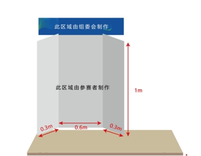 1. 制作展板:每个作品一个展位。每个展位包含空白展板1套(如上图所示)、桌子1张(1.8*0.7米)、椅子2把。