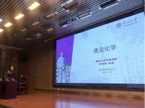 发布时间:2025-12-06化学如何改变世界?前沿科技与诺奖智慧如何照亮成长之路?2025年11月28日下午,燕赵学堂第二十一期讲座在石家庄市第二中学圆满举行。南开大学邱晓航教授受邀主讲,以“遇见化学”为主题,为现场500名师生带来了一场兼具知识性与趣味性的化学盛宴。