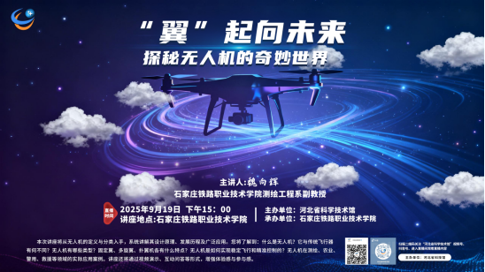 9月19日下午,河北省科技馆云上科普主题网络直播活动 “‘翼’起向未来:探秘无人机的奇妙世界”在石家庄铁路职业技术学院测绘地理信息科技博物馆成功举办。本次活动邀请石家庄铁路职业技术学院测绘工程系魏向辉副教授为观众揭秘“无人机”——这个翱翔天空的“智能之翼”。