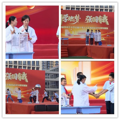 9月30日,按照省科技馆科普月期间“科普进校园”工作总体安排,积极对接石家庄市第四十中学,参与该校庆祝中华人民共和国成立76周年展演活动,为全校师生呈现了一场融合科学魅力与节日欢庆氛围的科学表演。