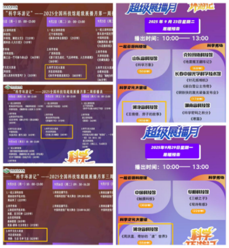 “科学环游记—2025全国科技馆超级展播月”作为2025年全国科普月的重要组成部分,由中国科技馆牵头组织,联合全国各省市科技馆共同推出。活动涵盖“一起云游科技馆”“科学秀场”“科学文化大家谈”“带你玩转炫酷实验”等多个板块,自9月1日至30日连续30天,通过中国科技馆官方抖音、微博、视频号及《科技日报》等平台,开展不间断的线上科普展播与直播,内容涵盖达人探馆、科学实验、科普剧、原创视频等多种形式,让公众足不出户即可“云游”科技馆,畅享科学乐趣。