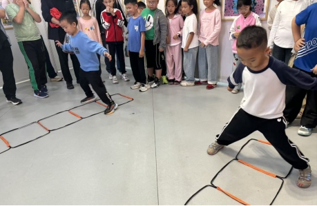 海选赛:现场小朋友们踊跃报名,依次完成单脚跳、双脚跳等基础动作,灵活避开“障碍格子”,最终选拔出16位佼佼者晋级。晋级赛角逐,难度逐步升级,不仅要求速度,更考验节奏把控与临场反应。通过三轮比拼,最终4位“跳跃小能手”脱颖而出,挺进总决赛。