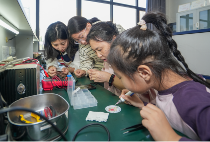 最令人期待的焊接与组装环节,在科普教师和志愿者的分组指导下有序进行。大家小心翼翼地按照电路图步骤,认真焊接每一个元件。当遇到灯不亮或声音触发不灵敏等小插曲时,老师们引导大家分析故障原因,尝试自主排查解决,有效培养了孩子们的动手能力和问题解决能力。
