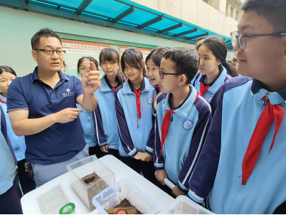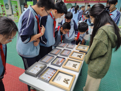 活动设置了实物观察环节,在志愿者引导下,同学们细致观察蝴蝶翅膀的绚丽鳞片,探究甲虫外壳的精密构造,并勇敢地与昆虫进行近距离活体互动。很快,最初的紧张被高涨的好奇心与探索欲所取代,同学们的热情被彻底点燃。接下来的蚕丝扇手工体验环节,更让同学们在亲身实践中切身感受到了昆虫资源的应用价值。