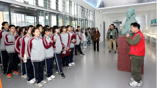 步入自然馆与地质馆,仿佛踏入了一个浓缩的自然宇宙。形态各异的生物标本静默陈列,熠熠生辉的矿物晶体错落有致,每一件展品都仿佛在低语着地球亿万年的沧桑变迁。在一块呈辉纹状的重晶石晶体前,志愿者驻足讲解:“它的形成,与剧烈的地质运动和复杂的化学作用息息相关,是大自然鬼斧神工的杰作”。 同学们围拢倾听,目光专注,神情中写满好奇与思索。每当讲解间隙,便有同学迫不及待地举手发问,问题层出不穷,思维的火花在展厅中碰撞。志愿者们始终耐心解答,用通俗而生动的语言,将深奥的自然奥秘与地质现象娓娓道来。一问一答之间,科学的种子悄然播撒,同学们的好奇心被彻底点燃,探索自然的热忱也在心中悄然生长。