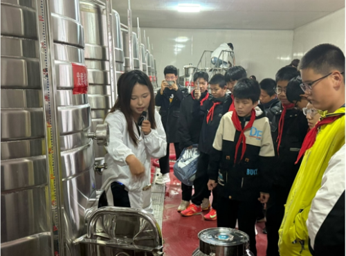 最后一站,同学们来到葡萄酒实训中心,听讲解员娓娓道来葡萄如何一步步变身成为香醇美酒。从筛选原料到发酵控制,再到酒窖陈酿,每一个环节都充满科学的魅力!