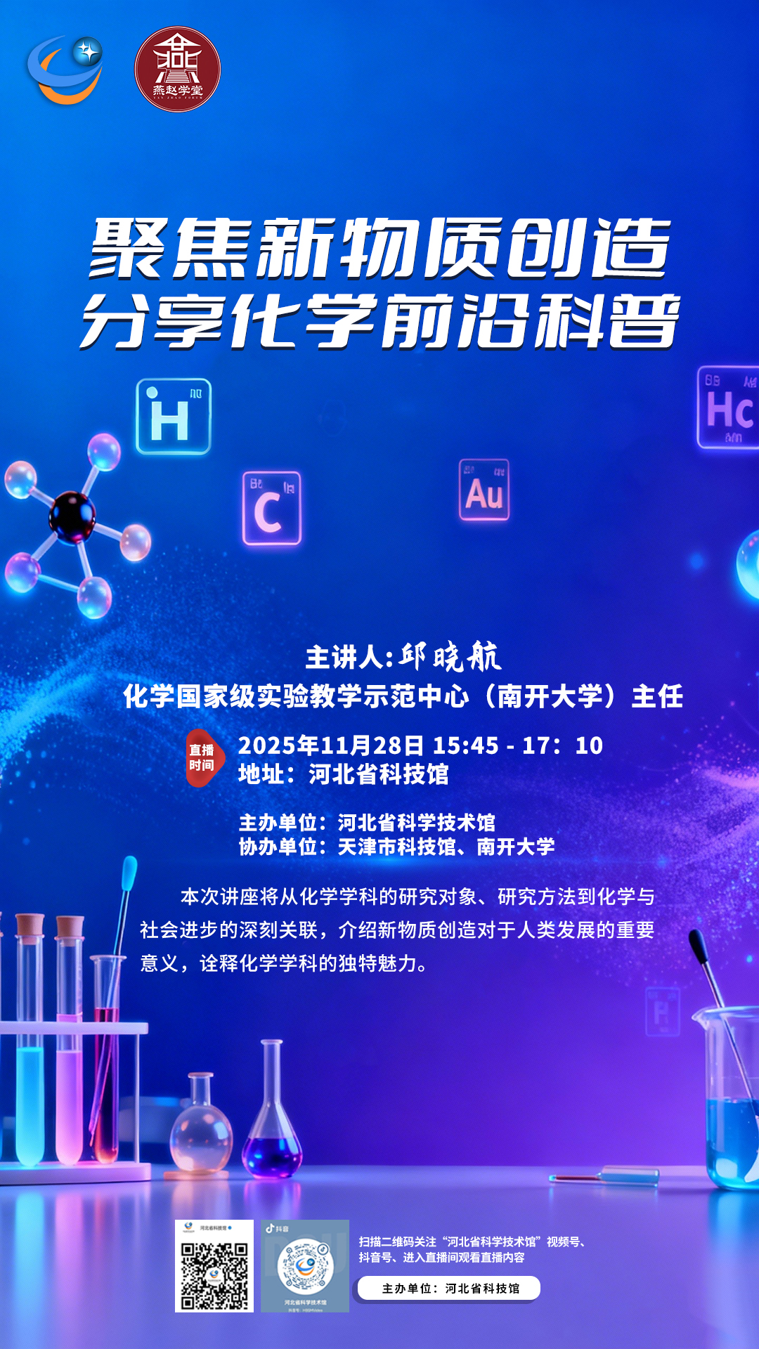 讲座预告|燕赵学堂:聚焦新物质创造 分享化学前言科普