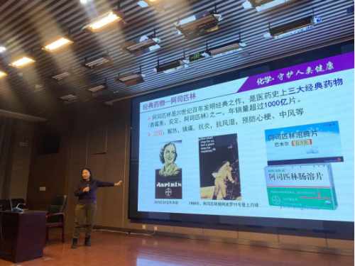化学不仅存在于课本公式中,更藏在生活的方方面面。讲座中,邱晓航教授凭借深厚的学术积淀与丰富的教学经验,从化学学科的研究对象、核心研究方法切入,用通俗易懂的语言阐释了化学与社会进步的紧密关联。她结合自身科研与教学经历,生动讲解了新物质创造在医药健康、环境保护、新材料研发等领域的重大意义,让抽象的化学知识变得鲜活可感。作为国家级一流课程负责人,邱教授擅长将前沿学术内容转化为青少年易于理解的科普知识,现场案例丰富、互动频繁,不时引发同学们的阵阵掌声。