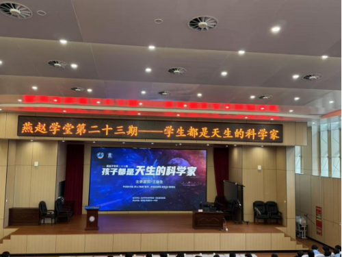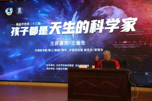 发布时间:2025-12-1112月8日,一场别开生面的科普讲座在石家庄市第四十一中学顺利举办。中国科学院理学博士、教授、博士生导师,中国科技馆原馆长王渝生受邀担任主讲嘉宾,为师生们带来了题为“孩子都是天生的科学家” 的精彩分享。本次活动由北京市科协、河北省科技馆主办,现场氛围热烈、互动频繁,为校园增添了浓厚的科学探索氛围。