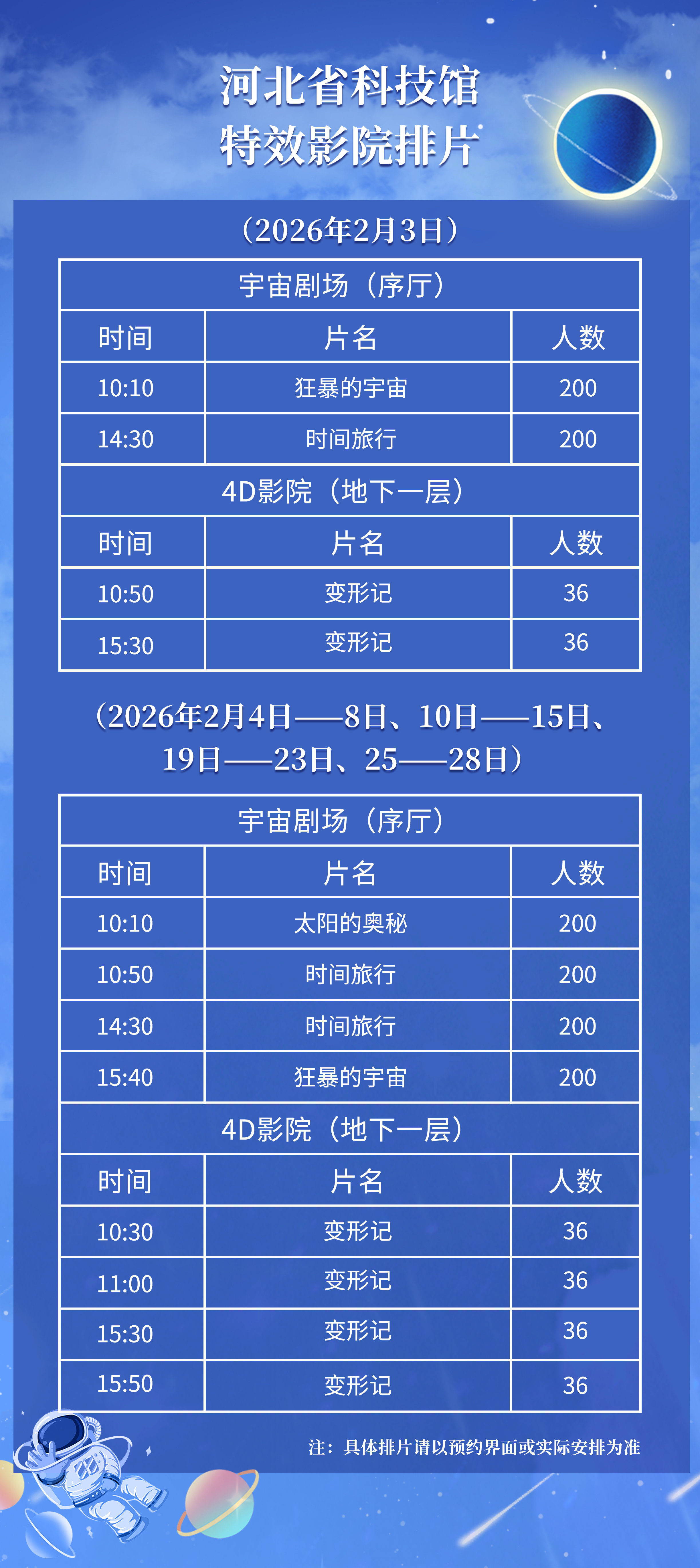 河北省科技馆2月3日-2月28日特效影院排片