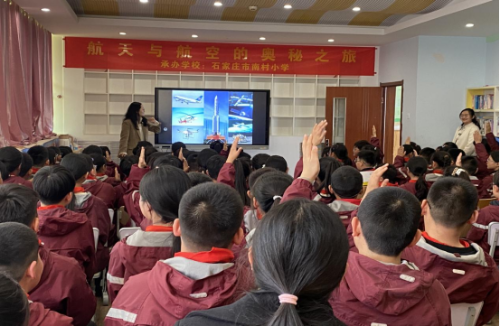发布时间:2026-04-023月31日,燕赵学堂第五期携“航天与航空的奥秘之旅”科普报告走进乡村学校——石家庄市长安区南村小学,和上百名乡村学生共同开启了一场航空航天的奥秘之旅。