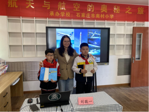 两位邢台的小学生和专家合影留念