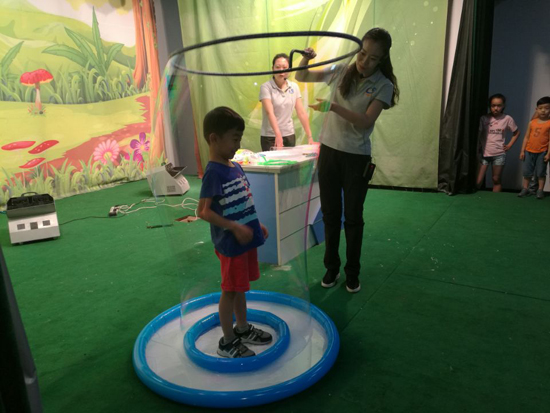 端午期间,省科技馆每天都安排了精彩纷呈的科普活动,丰富观众的假日体验。科学实验《好玩儿的泡泡》、《新乌鸦喝水》、《有趣的平衡》受到了小朋友们的青睐,实验以生动有趣的故事情节、奇妙的科学现象,幽默诙谐的表演,带领观众探索好玩的物理和化学世界,让小朋友们不仅用双眼看到了神奇的实验现象,还亲手参与实验,近距离感觉科学的神奇。天文启蒙系列看片会《天空中的小地球》、《恒星的一生》、《宇宙之旅》,集趣味卡通和天文知识为一体,通过二维,三维动画技术的完美结合,将神奇的自然现象和天文科普知识通俗易懂地展现出来,不仅让孩子们收获到了天文知识,而且激发了他们对天文领域的好奇心。