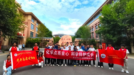 科普月期间,我校师生走出校门,深入中小学、社区开展科普宣传、实验展演、实验室参观与标本制作等服务,推动科普资源下沉,助力科学教育均衡发展。河北师范大学化学与材料科学学院青年志愿者协会于2025年9月26日组织志愿者前往石家庄市特殊教育学校开展“化学点亮童心,科学伴护成长”志愿活动。活动过程中,志愿者向孩子们展示了“蓝色星云”“可乐变雪碧”“指纹检验”等五个化学实验。这些神奇的化学现象,瞬间抓住了孩子们的目光,激发了他们浓厚的学习兴趣。志愿者们的耐心陪伴和细致讲解,满足了孩子们对化学世界的好奇心,点燃了他们探索化学世界的热情。
