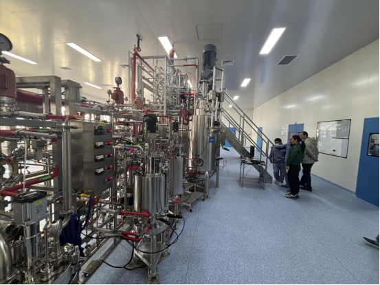 在基地技术人员的引导下,大家依次参观了生物发酵、制剂灌装等核心功能区域。技术人员详细介绍了中试基地作为连接科学发现与民生应用的核心价值——通过小线试验验证工艺、中线调试优化流程,成功破解量产瓶颈,让实验室成果走向产业化。