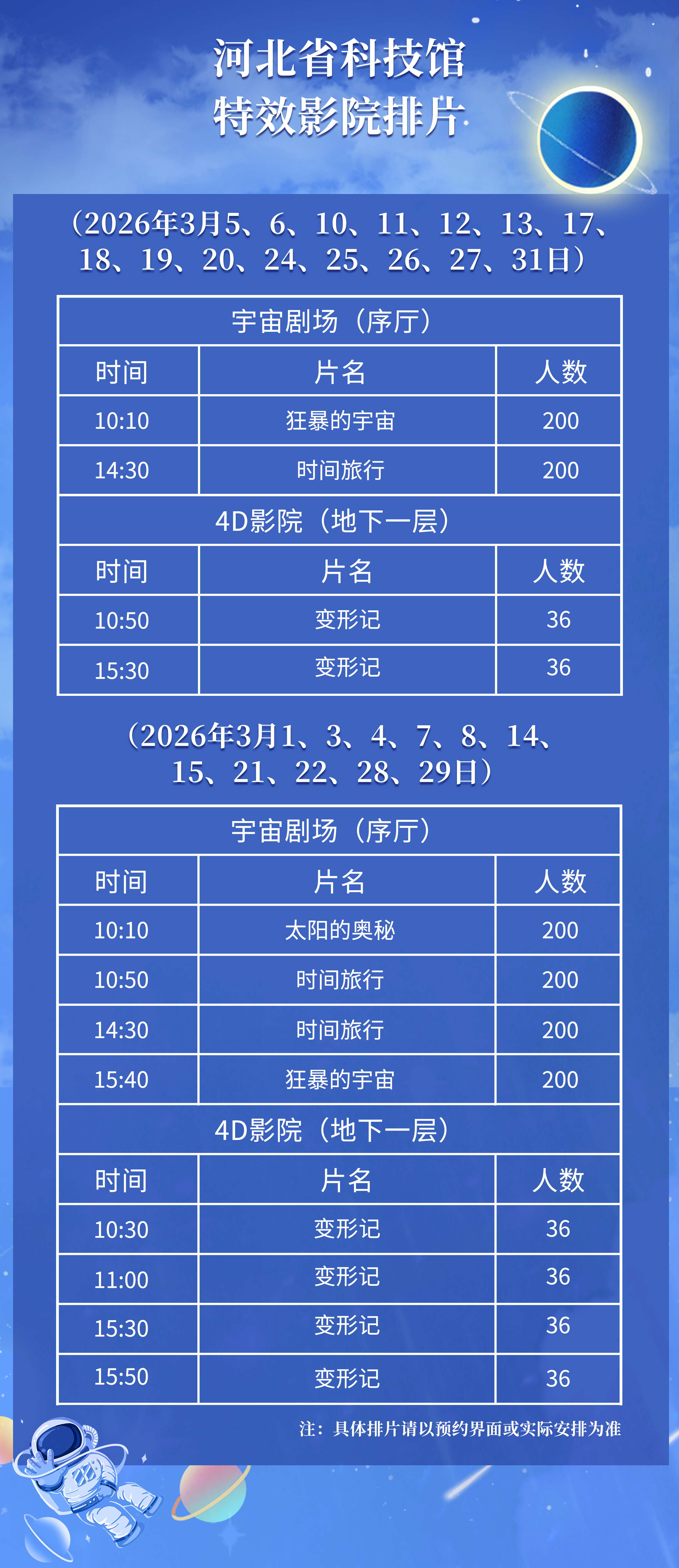 河北省科技馆3月1日-31日特效影院排片